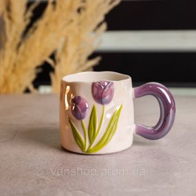 Відгуки та питання про - Новорічна порцелянова чашка для чаю та кави "Ніжний Тюльпан" з 3D-декором 400 мл, святкова кружка чашка на подарунок Фіолетовий