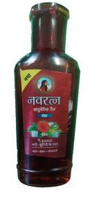 Масажна олія Навратна 9 трав — універсальна масажна олія з охолоджувальним ефектом. Використовується як для масажу шкіри голови, так і всього тіла. Охолоджує й освіжає шкіру голови, стимулює мікроциркуляцію, пробуджує волосяні фолікули та прискорює ріст здорового волосся, запобігає сивині та випаданню, лікує лупу. Сприяє зменшенню головного болю, знімає напруження, що накопичилася. Корисно для міцного сну та покращення пам'яті. Терапевтичний ефект олії під час нанесення на тіло полягає в усуненні втоми, стимуляції та тонізації м'язів, поліпшенні кровообігу в них, полегшенні м'язових болів і судом. Чудово знімає відчуття важкості в ногах. Олія "Наворчена" ефективна також у разі легких опіків, чудово підійде як засіб після засмаги. Відчуття приємної прохолоди під час нанесення олії на шкіру якомога доречніше припаде в спекотний літній день. Масажна олія Накрута 9 трав називається так, тому що має в складі основну цілющу комбінацію з 9 лікувальних трав, але насправді натуральних компонентів у ньому набагато більше. НАЗНАЧЕНИЕ Слабість, втома, перевтома, головний біль, випадання волосся, лупа, сальність волосся, подразнення шкіри голови, опіки, біль у м'язах. АКТИВНІ ІНГРЕДІЄНТИ Кунжутна олія (Sesamum indicum).. Олія кунжуту багата на вітамін E, кальцій, фосфор, залізо, магній і цинк. Вважається універсальним засобом для догляду за волоссям і його зміцненням. Очищає шкіру голови від забруднень і мертвих клітин, регулює секрецію сальних залоз, усуває лупу, робить волосся здоровим, сяйливим і шовковистим. Швидко поглинальна олія для масажу. М'ята перцева (Mentha piperíta). Тонізує й освіжає жирну шкіру, зберігаючи її здоровою. Заспокоює шкіру голови та зменшує лупу. Ефективна в лікуванні болю під час запалення суглобів, має знеболювальний для м'язів і протизапальний ефект. Амла (Emblica officinalis). Надкорисний засіб для волосся. Чинить стимулювальний ефект на шкіру голови, у такий спосіб сприяючи поліпшенню кровообігу та відновленню обмінних процесів у клітинах шкіри, перешкоджаючи появі сивого волосся й облисіння. Її вплив на саму структуру волосся дарує йому здоровий блиск, еластичність і міцність, додає густоти, перешкоджає утворенню лупи, стимулює кровообіг. Натуральне джерело вітаміну С. Коричник камфорний (Cinnamomum camphora). Стимулює мікроциркуляцію кровотоку в шкірі голови, забезпечуючи волосяні фолікули киснем і найважливішими поживними компонентами. Внаслідок цього стан волосся помітно поліпшується, реанімується його структура, з'являється блиск. Він також доглядає і за довжиною волосся, живить і зволожує, робить його слухнянішим, пом'якшує, запобігає січенню й ламкості. Муста (Cyperus rotundus). Активно використовується в складі косметичних засобів для догляду за волоссям. Має тонізувальні та антизапальні властивості, знімає подразнення. Сити кругла зміцнює волосяні цибулини та стимулює ріст волосся, у такий спосіб запобігаючи його випаданню. Робить волосся здоровим, красивим і блискучим. Гібіскус (Hibiscus rosa-sinersis). Стимулює швидкий ріст і запобігає надмірному випаданню. Такий вплив дасть вам стати володаркою шикарної й об'ємної зачіски з густими та блискучими локонами! Брингарадж (Eclipta alba). Робить волосся пишнішим, активізує його ріст, перешкоджає виникненню сивини, ефективний у боротьбі проти облисіння. Має протигрибковий ефект і позбавляє шкіру голови 