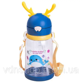 Відгуки та питання про - Пляшка для води дитяча 550 мл на ремінці пляшечка з трубочкою для спорту та школи Синя HP-14-44BL