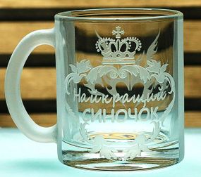 Опис Чашка скляна 320 мл Синочок з гравіюванням кружка для сина подарунок на День народження до свята Іменна чашка