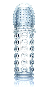 Подовжувальна рельєфна насадка із шипами. Насадка з численними виступами, розроблена спеціально для того, щоб доставити максимум задоволення вашому партнеру. Завдяки тиску на статевий член він ефективно збільшує тривалість статевого акту. Також ідеально підходить для вібратора або пальців. Насадка пінису з безліччю виступів, , які подразнюють ергономічні зони жінки до втрати свідомості. Накладка зроблена з дуже приємного на дотик матеріалу. Вона дуже еластична та міцна. Насадка легко надівається й добре фіксується на дулі члена, чудово розтягується як у довжину, так і за шириною. Рекомендується використовувати з лупикантом на водній основі. Довжина загальна — 13,5 см, подовжує статевий член на 1 см, діаметр — 3,8 см, матеріал — TPR.