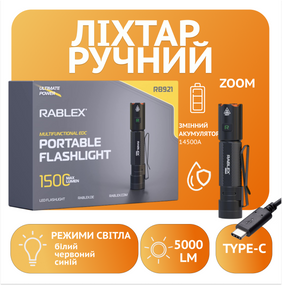 Rablex RB921 — це сучасний ліхтар для активних людей, які цінують надійність, ефективність і комфорт.