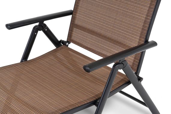 Родзинкою продукту є те, що його спинку можна відрегулювати під будь-який із семи доступних рівнів нахилу. Тільки подумайте: цілих сім різних положень! Експериментуйте та вибирайте, як вам більше до вподоби. До речі, принцип регулювання нахилу дуже простий та інтуїтивно зрозумілий. Якщо ви хочете прийняти положення лежачи, обережно підніміть підлокітники і притисніть спину до шезлонга - тоді спинка розкриється. Якщо ж ви хочете повернутися в сидяче положення - підійміть підлокітники і підійміть спину - тоді спинка повернеться у вертикальне положення. Щоб зафіксувати шезлонг, використовуйте замок, розташований під підлокітниками.