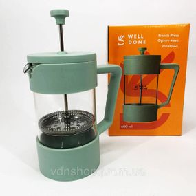 | Товар | Стильный стеклянный заварочный чайник Well Done WD-8056A 600 мл, Ручной френч прес для чая AT-70 |