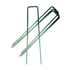 П-скоби ENITA для штучної трави та агроволокна з оцинкованої сталі (≈150 мм × 25–30 мм, Ø~3 мм). Швидкий монтаж, надійна фіксація країв і швів, стійкість до корозії. Рекомендована установка: периметр ~кожні 0,5 м, шви 20–30 см
