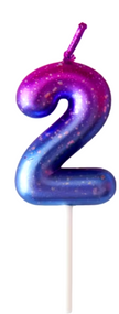 Відгуки та питання про - Свічка для торта цифра «2» синьо-фіолетовий металік