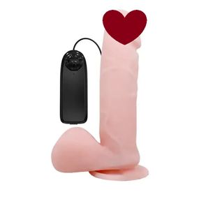 Тілесний реалістичний ділдо з мошонкою на міцній присосці та виокремленою головкою. Плавне регулювання вібрації відбуваються за допомогою дротового пульта. Працює від 2 батарейок типу АА (в комплект не входять). Колір: тілесний Розмір: довжина 19,5 см, діаметр 4,4 см