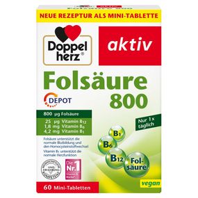 Опис Вітаміни "Doppelherz" Фолієва кислота + В1 + В6 + В12 для нервової та серцево-судинної систем, мозку, імунітету, 60 шт., Німеччина