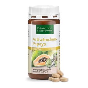 Артишок і Папайя - ефективна німецька харчова добавка, рекомендована для поліпшення процесів травлення, стимулюючи розщеплення жирів, білків і вуглеводів, надає жовчогінний ефект.