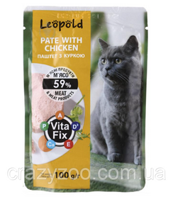 Вологий корм для котів Леопольд паштет із куркою 100 г