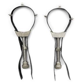 Поціновувачам БДСМ-практик рекомендуємо купити затискачі з шипами для грудей Art of Sex – Hard Chest clamps. Ця модель призначена лише для досвідчених учасників, які розуміють усі тонкощі жорсткого впливу на груди. Шипи на затискачах забезпечать додаткову стимуляцію в процесі практик. За допомогою механізмів регулювання ви можете змінювати силу стиснення. Жорсткі шкіряні затискачі з шипами ідеально підійдуть для ігор із домінуванням та підкоренням, особливо для пет-плей та сценаріїв, де жінка є повноцінною сабмісив. Матеріал: натуральна шкіра, метал. Маса: 305 г.