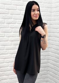 Відгуки та питання про - Женская легкая летняя удлиненная блуза с кружевом GF04171 цвет черный, размер 44