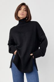 Відгуки Женский вязаный свитер oversize с разрезами по бокам - черный цвет, L (есть размеры)