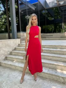 Характеристики Женское красивое стильное асимметричное летнее платье KI229 цвет красный, размер M