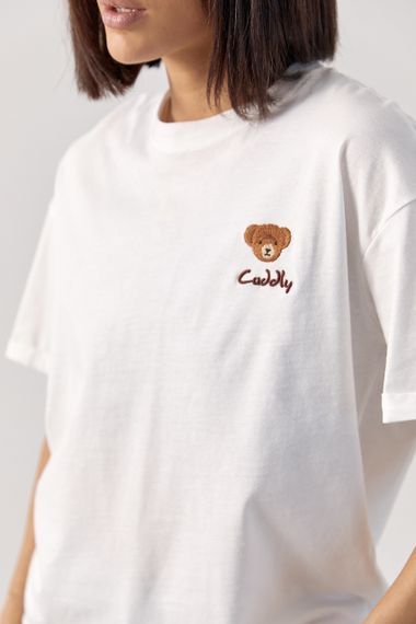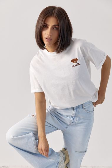 Відгуки та питання про - Жіноча однотонна футболка з ведмедиком - білий цвет, L (є розміри)