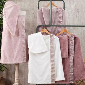 Характеристики Жіночий набір рушників Pupilla Flor для сауни: рушник-спідниця на липучці, чалма, капці