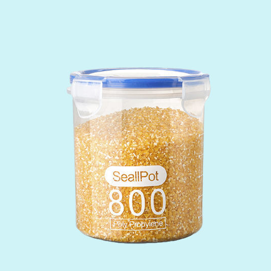 - Пластиковые емкости – легкие, ударопрочные, с герметичными крышками, отлично подходят для круп, макарон и других сухих продуктов.