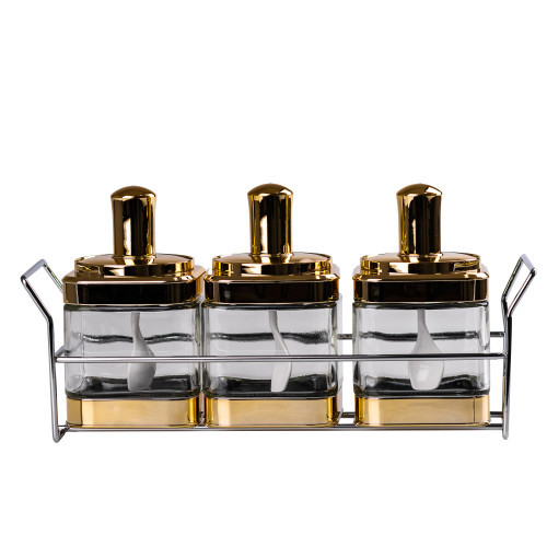 Новинка | Банки для сыпучих продуктов набор из 3 шт на металической подставке, золото | [[ getCurrentDecimal('895') ]] ₴ |