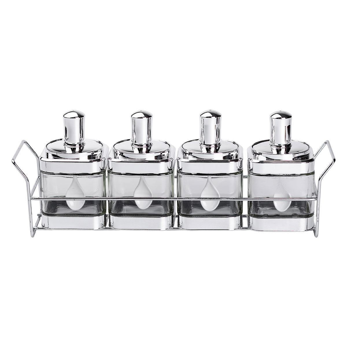 Новинка | Набор банок для сыпучих продуктов 4 штуки 350 мл стеклянные на металлической подставке | [[ getCurrentDecimal('1069') ]] ₴ |