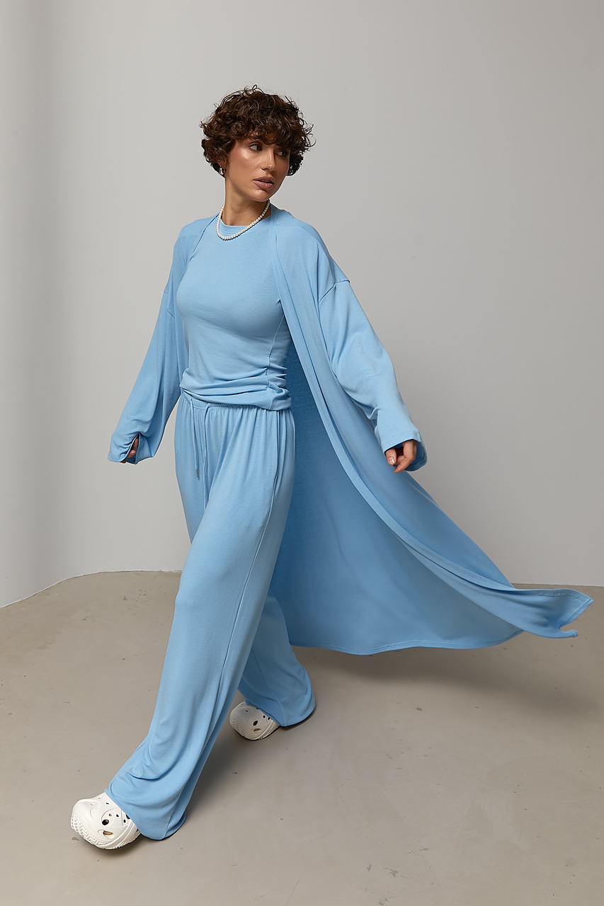 | Новинка | Легкий костюм із довгого кардигана, футболки та широких штанів - блакитний цвет, ONE SIZE (є розміри) | [[ getCurrentDecimal('2760') ]] ₴ |