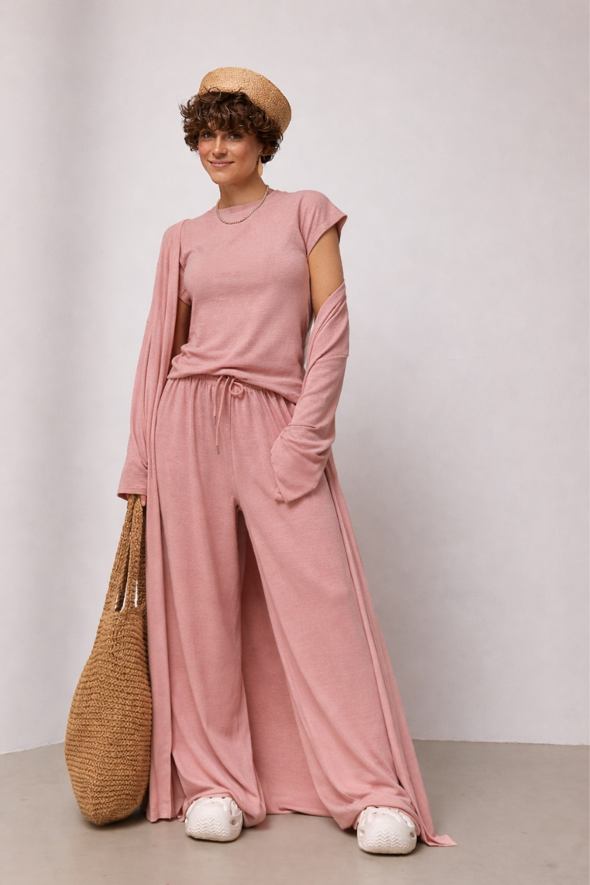 | Новинка | Легкий костюм із довгого кардигана, футболки та широких штанів - пудра цвет, ONE SIZE (є розміри) | [[ getCurrentDecimal('2760') ]] ₴ |