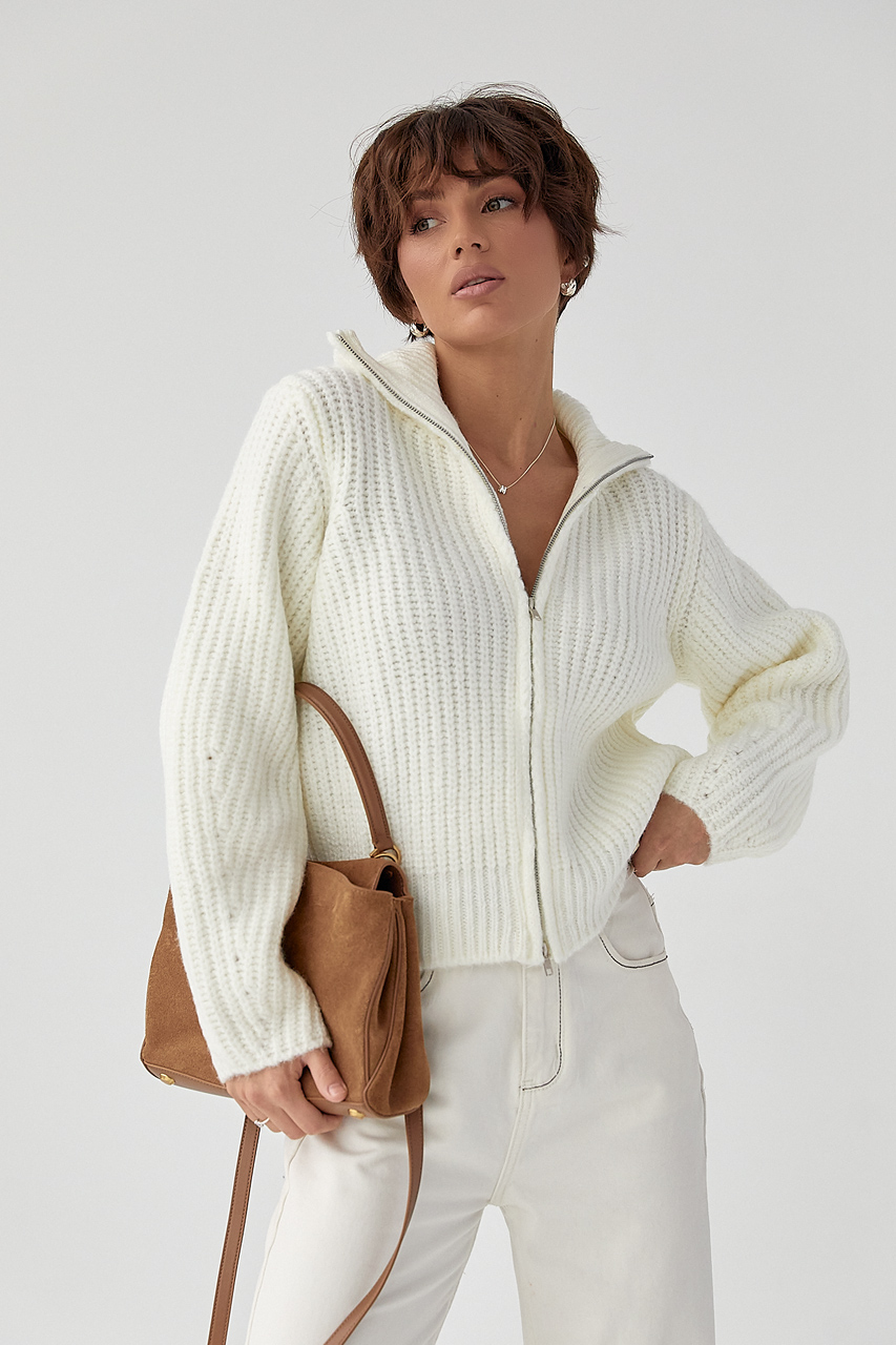 Кардиган 1048.2844 L-XL, В'язаний кардиган з бічною блискавкою - молочний цвет, ONE SIZE (є розміри), Кардиган на блискавці з крупної в'язки - молочний цвет, ONE SIZE (є розміри)