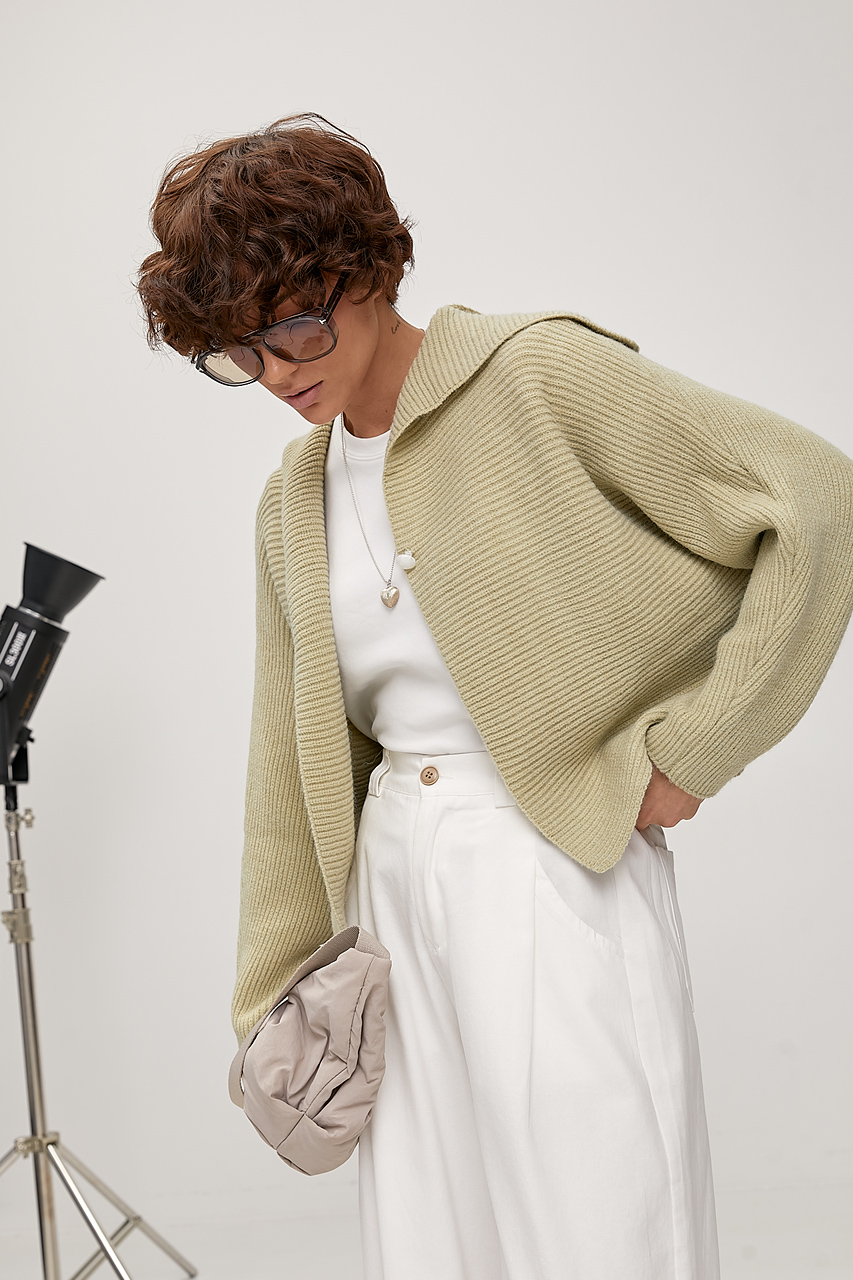 НовинкаВ'язаний жіночий кардиган із відкладним коміром - м'ятний цвет, ONE SIZE (є розміри)[[ getCurrentDecimal('980') ]] ₴