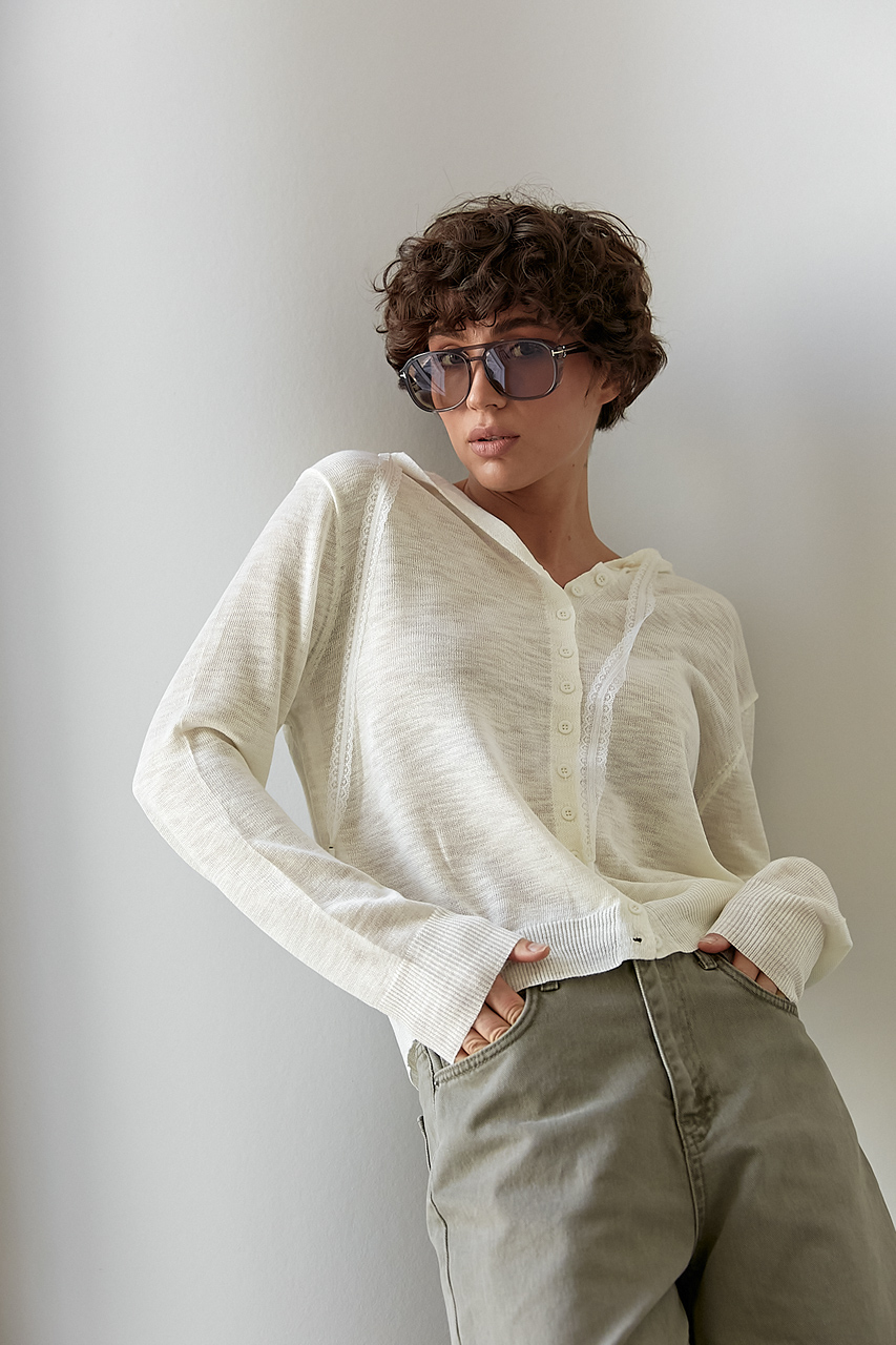 НовинкаЛегкий в'язаний кардиган на ґудзиках із капюшоном - молочний цвет, ONE SIZE (є розміри)[[ getCurrentDecimal('560') ]] ₴