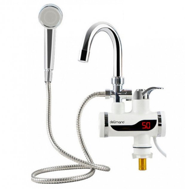 Кран-водонагреватель проточный с душем Delimano 3000 Вт нижнее подключение, Проточный кран водонагреватель DELIMANO, Водонагреватель Delimano (e607b6-53)
