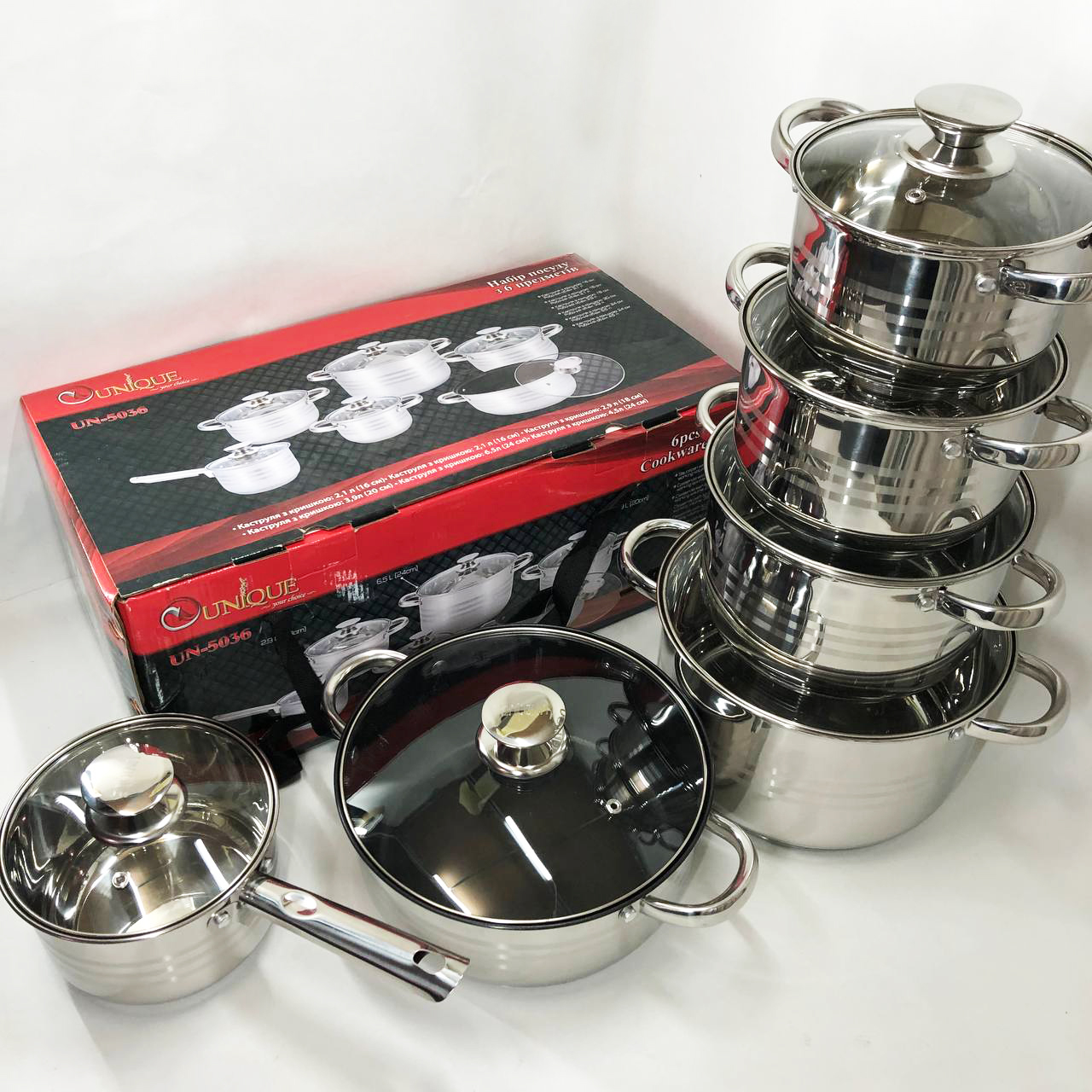 Набір посуду туристичний чаша+чаша СИЛА, Набор посуды MAGIO MG-1202, Набор посуды UNIQUE UN-5036 из нержавеющей стали с толстым 5-ти слойным дном с крышками стеклянными 12 предметов 💸 Какие самые дешевые наборы посуды можно купить в Киеве, Украине?