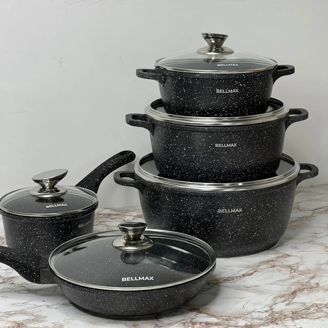 | Новинка | Набор посуды с гранитным антипригарным покрытием BellMax BM-305 из 12 предметов Черный | [[ getCurrentDecimal('2469') ]] ₴ |
