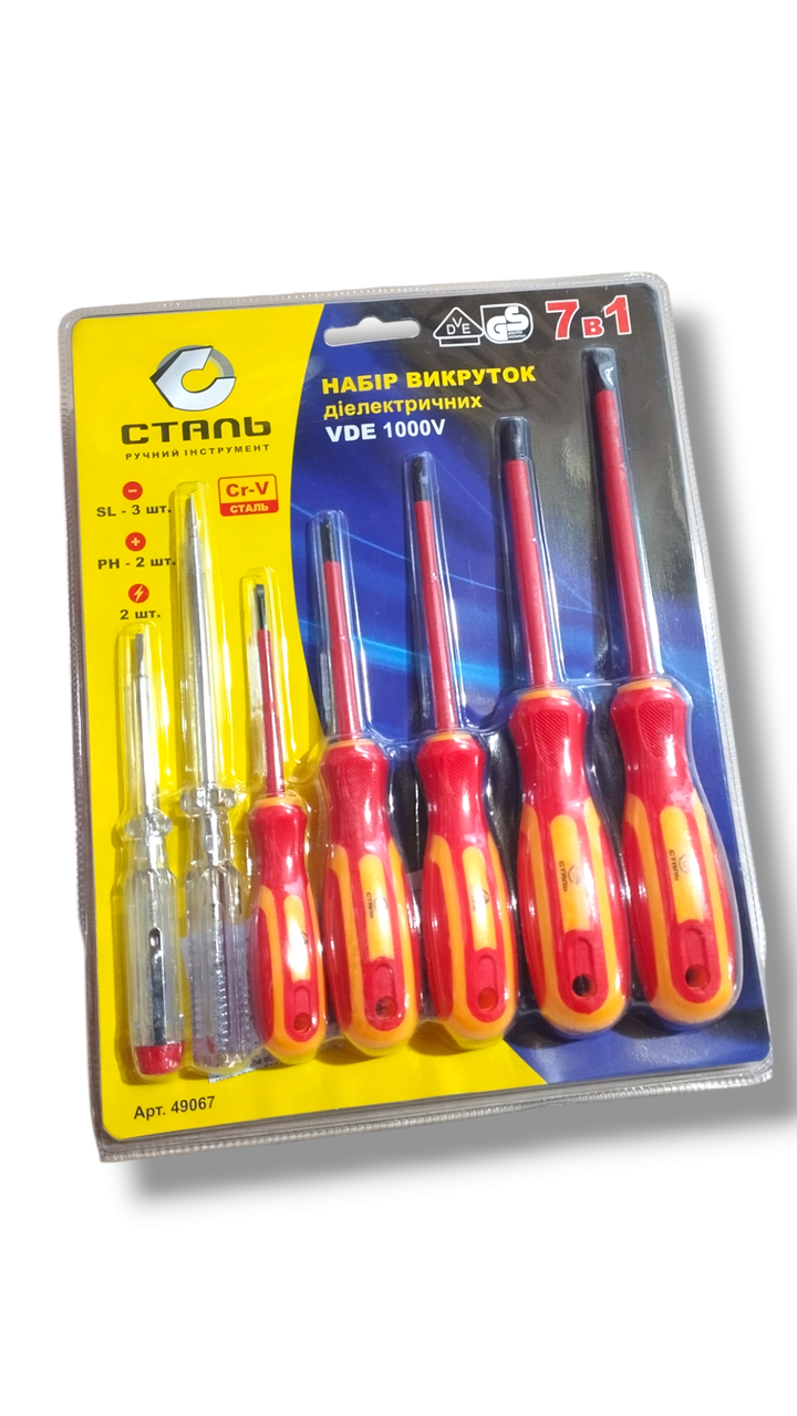 | Новинка | Набір викруток діелектричних, 1000V, VDE, 7 шт. (SL3*75, SL4*100, SL5,5*125mm; SL6,5*150mm;PH1*80, PH2*100mm;тестер 140мм,тестер | [[ getCurrentDecimal('535') ]] ₴ |