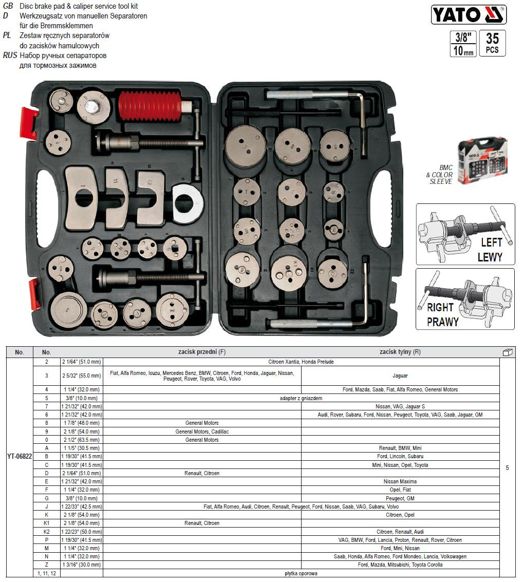 Самая дорогая модель | Набор ручных сепараторов для тормозных колодок YATO Польша Ø=3/8" 35 предметов YT-06822 | [[ getCurrentDecimal('2871') ]] ₴ |