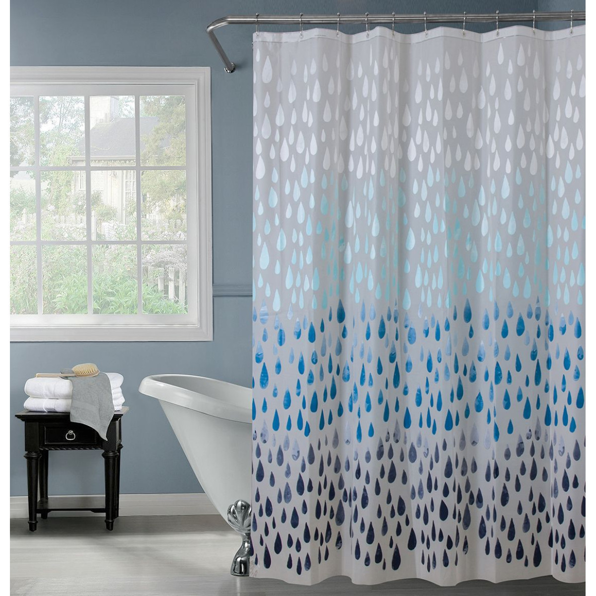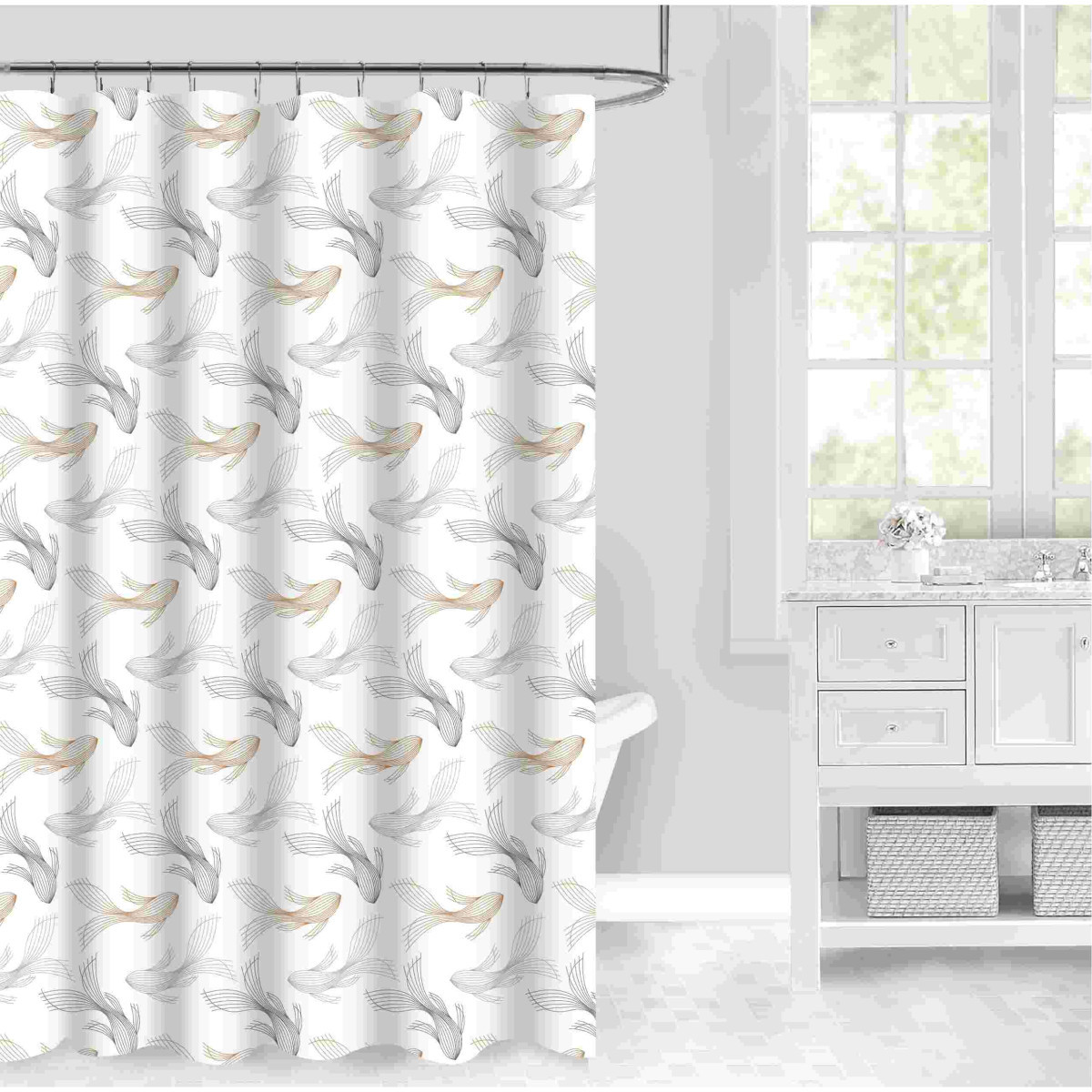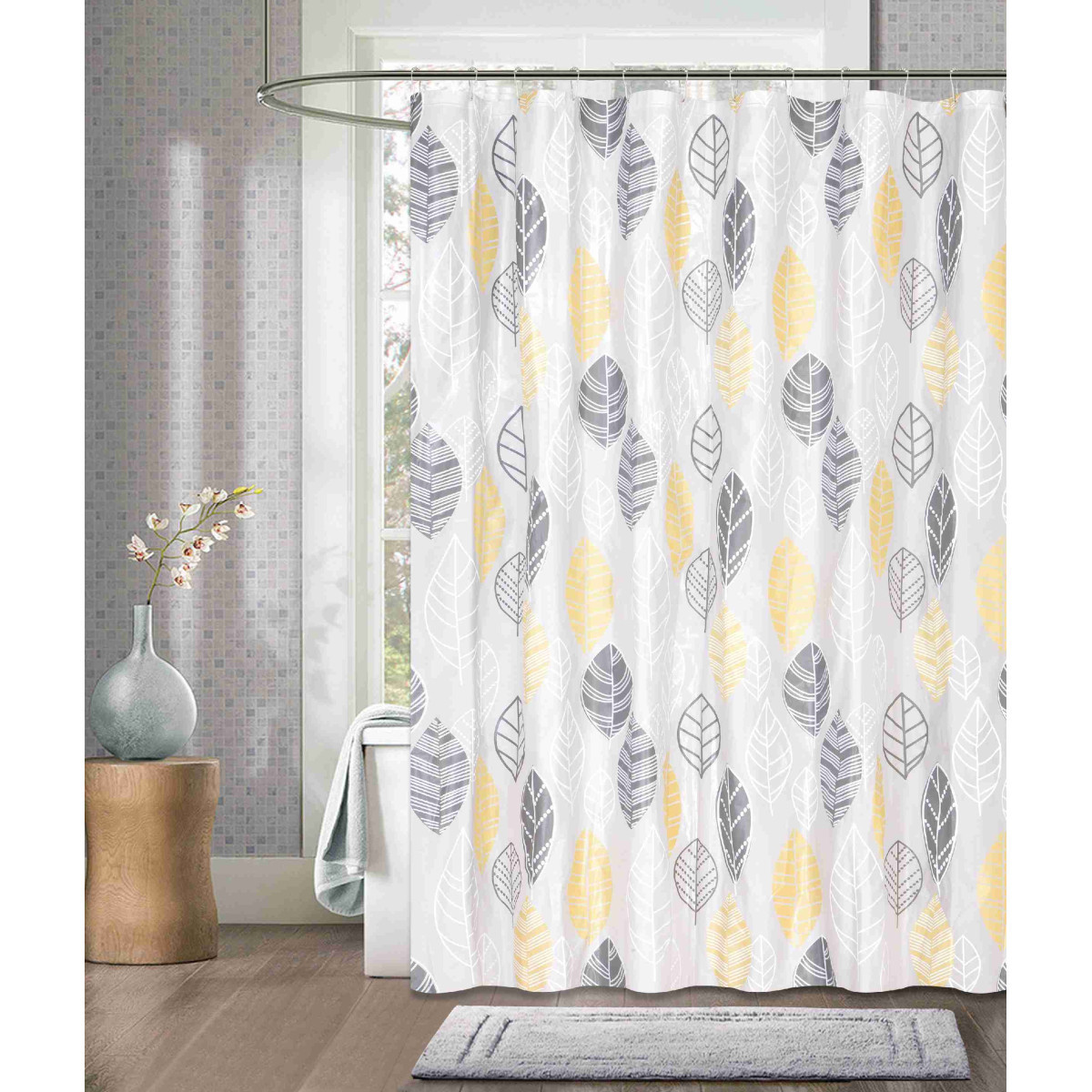 Дизайн — однотонные или с принтом, прозрачные или плотные — подбирайте под общий стиль ванной комнаты.