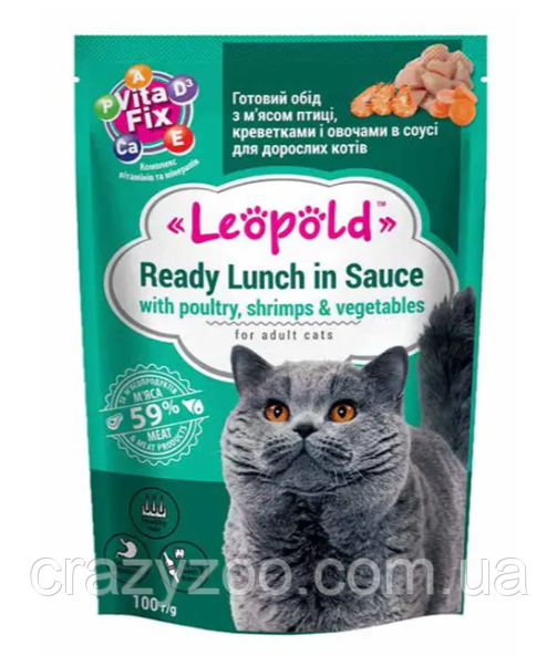 | Самая дешевая модель | Влажный корм для котов Леопольд Рагу с телятиной в соусе с овощами 100 г | [[ getCurrentDecimal('10') ]] ₴ |