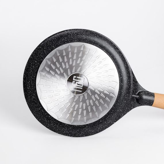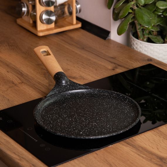 Описание Алюмінієва млинцева сковорода з мармуровим антипригарним покриттям Ø 24 см, товсте дно MGC Black