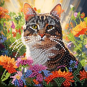 Отзывы и вопросы о - Алмазная мозаика "Кот среди цветов" ZAV1818-12, 18х18 см