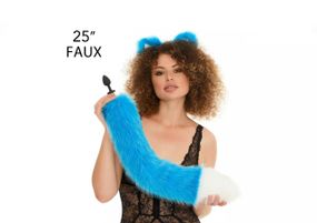Отзывы и вопросы о - Анальный меховой хвост без пробки, Ярко-голубой с белым кончиком, OKOVA 60 см. sexstyle