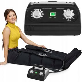 Представлений апарат для пресотерапії від 4FIZJO стаціонарний та підключається до електромережі, тому ідеально підходить для домашнього використання. У комплекті поставки: дві манжети на ноги, два повітряні шланги, розподільник повітроводу та сумка для зберігання. Манжети для ніг мають довжину 97 см і обхват до 70 см. Вони розділені на 4 камери, що дозволяє краще і точніше досягати потрібних місць. Застій лімфи часто супроводжується набряками, тому такий поділ манжети є ефективним для опрацювання всіх зон.