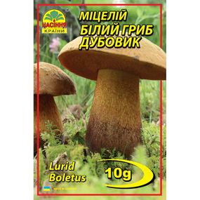 Білий гриб — найцінніший у харчовому співвідношенні з усіх їстівних грибів. Має приблизно два десятків форм, що вирізняються забарвленням плодового тіла та мікоризним зв'язком з тією чи іншою деревною породою. Зерновий міцелій білого гриба дубовик призначений для посадки під листвяними деревами на присадибній ділянці. Під час виготовлення сухого зернового міцелію використовується овес, пшениця, жита та інші злаки. Спочатку на зерні пророщується міцелій, потім воно дробиться й висушується за спеціальною технологією за температури 23-25 °C. Міцелій переходить у сплячий стан, зберігаючи свої властивості. Термін зберігання водночас збільшується до 5-7 років. Треба врахувати, що під час сушіння міцелій у 5-6 разів втрачає вагу, тому 10 г сухого міцелію еквівалентні 50-60 г звичайного зернового міцелію. У разі потрапляння в сприятливі умови (температура, вологість, кислотність ґрунту) міцелей пробуджується й починає активно проростати. Під гриби потрібно виділити ділянку під листвяним деревом площею 2-2,5 м2, на якій зробити котлованчик глибиною 20 см та пошарово його заповнити: 1-й шар – пале листя, трава, кора деревини з додаванням перегною та землі, що взята під деревом (10 см); 2-й шар – міцелій, рівномірно розсипаний по всій площі; 3-й шар – знов рослинні залишки, як у першому шарі, та садовий або лісний грунт. Після посіву зволожувати крапельним способом. Оптимальна температура для росту грибів від 12 до 250С. Увага! Дуже важливим чинником для успішного вирощування грибів є кислотність ґрунту. Для білого гриба оптимальне значення кислотності Ph = 6,5-7. Рекомендуємо під час садіння використовувати , який містить необхідний для розвитку грибниці набір макроелементів, гідрогель для утримання вологи, розкислювач ґрунту, а також тести-індикатори для контролю за рівнем Ph ґрунту.
