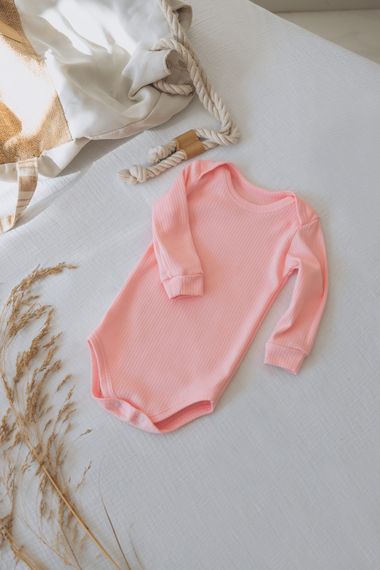 Боді інтерлок рубчик довгий рукав колір Рожевий р 68