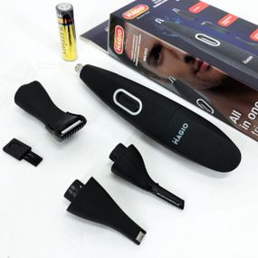 🔹 Универсальный триммер MG-913 имеет 4 насадки: насадка для стрижки в носу и ушах (1;5 мм). С помощью этой насадки можно быстро; безопасно и безболезненно удалить нежелательные волосы в носу и ушах. Абсолютно не повреждает нос и уши и их кожу. Совет – во избежание травмирования носа и барабанной перепонки не стоит устанавливать насадку в нос и ухо глубже 1 см.