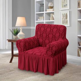 Жакардовий чохол на крісло Чохли з дамаського жакарду виготовлені з високоеластичних тканин (95% поліестеру і 5% спандекса). Еластичність і майстерність виготовлення забезпечують максимальне прилягання до більшості крісел. Чохол для крісла: - Ширина і глибина посадкового місця 70-80 см. - Висота спинки від місця посадки 70-80 см. - Висота підлокітників 35-45 см. - Ширина підлокітників 25-35 см. - Висота спідниці 35 см. Наші чохли допомагають захистити ваші меблі від щоденного зносу, розливів і плям - чудовий вибір для дому з дітьми та домашніми тваринами. Крім свого привабливого зовнішнього вигляду, чохли жаккарда зручні у використанні: вони легко і швидко надягаються і їх не потрібно прасувати після прання.