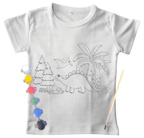 Детский набор для творчества футболка раскраска Динозавры белая (ДФ0001)