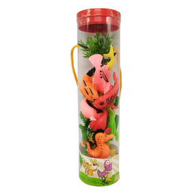 Яркий и приятный на ощупь набор веселых животных с декорациями помогут малышу создать мир! Размер колбы: 5х5х20 см.