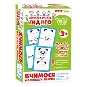 Предназначенный для маленьких художников, интересный комплект Индиго. Учимся рисовать животных 13109082 – замечательное дополнение досуга Вашего крохи. Если Ваш малыш любит заниматься творчеством, то такое времяпровождение непременно его заинтересует. В набор входит 8 ламинированных двусторонних карточек с пошаговым рисованием животных. Вверху карточки изображен образец, а в нижней части предусмотрены пунктирные линии для рисования. Попробовав один раз, можно стереть нарисованное и начать сначала. С многократными карточками из коллекции «Интеллект-студия ИНДИГО» Ваш маленький художник легко научится рисовать очаровательных зверушек. На карточках шаг за шагом объясняется, как нарисовать лягушонка, коровку, тигренока и пандочку. Такая настольная игра не только способствует расширению кругозора и развития мелкой моторики, но и помогает Вашему непоседе получить новые знания, развивает образное мышление.