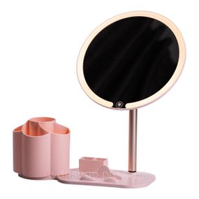 Описание Зеркало для макияжа с подсветкой круглое настольное Ø21 см с подставкой Розовое HP-10-9AP