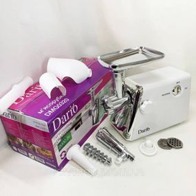 🔴ВИДЕО РАСПАКОВКИ ТОВАРА НИЖЕ!🔴 💡 Вы получите такой товар, как на видео! 👇Жми "Подробнее!"👇📣 Портативная мясорубка для кухни, Мясорубка для жилистого мяса с шинковкой кубиками ZD-70 💡 Настоящая помощница на вашей кухне DARIO DMG0320 — максимальная производительность и функциональность в одной мясорубке. Благодаря высокой мощности двигателя 2000 Вт, процесс измельчения будет максимально быстрым и легким, даже пропуская большие порции продуктов. Функция "Реверс" — поворот шнека назад для освобождения мясорубки от застрявших плотных фрагментов мяса или кости. Теперь нет необходимости разбирать прибор. 💡 Характеристики: 🔘 Ширина: 17,5 см🔘 Высота: 35 см🔘 Материал загрузочного лотка алюминий🔘 Комплектация: Мясорубка🔘 Максимальная мощность: 2000 Вт🔘 Бренд: Dario🔘 Загрузочный лоток🔘 Инструкция🔘 Страна производства: Китай🔘 Насадка на томаты🔘 Глубина: 34 см🔘 Реверс: Да🔘 Вес: 3,4 кг🔘 Количество скоростей: 1📝 Дополнительные параметры 🔘 Материал лотка: металл🔘 Производитель: Dario🔘 Реверс: Да🔘 Страна производитель: Германия🔘 Количество решеток: 2🔘 Цвет корпуса: Белый🔘 Состояние: Новое🔘 Производительность мясорубки: 1🔘 Материал корпуса: Нержавеющая сталь, Пластик🔘 Номинальная мощность: 2000