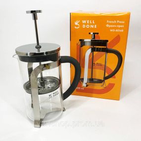 👉 Френч-пресс для дома и офиса, Френч-пресс с ручкой, Стеклянный заварочный чайник для чая чайники XT-53 💎 Френч-пресс Well Done станет отличным помощником на кухне для приготовления заварного чая методом отстаивания. Является одним из самых удобных приспособлений, позволяющих сэкономить время и насладиться любимым напитком. Френч-пресс отлично подойдет для ежедневного использования или для сервировки праздничного стола, благодаря стильному и современному внешнему виду. 💎 Характеристики: • Тип: френч-пресс• Форма: круглая• Материал ручки: бакелит• Материал фильтра: нержавеющая сталь• Цвет: разные цвета• Производитель: Well Done• Материал колбы: стекло, пластик, сталь📌 Дополнительные параметры • Объем: 600• Ситечко: Есть• Пресс-фильтр: Есть• Материал крышки: Нержавеющая сталь• Материал корпуса: Нержавеющая сталь• Производитель: Well Done• Материал ручки: Пластик• Состояние: Новое• Тип посуды: Френч-пресс• Материал: Стекло• Материал колбы: Термостекло