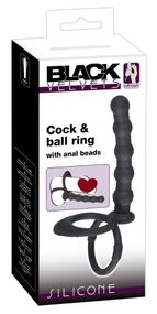 Анальное дыльдо-ожерелье с кольцами на пенис и мошонку для двойного проникновения. Размеры: общая длина 19 см, анальные бусы: длина 12,5 см, диаметр 2,3 см кольцо на пенис – диаметр 3,8 см кольцо для мошонки – диаметр 5 см Цвет: черный